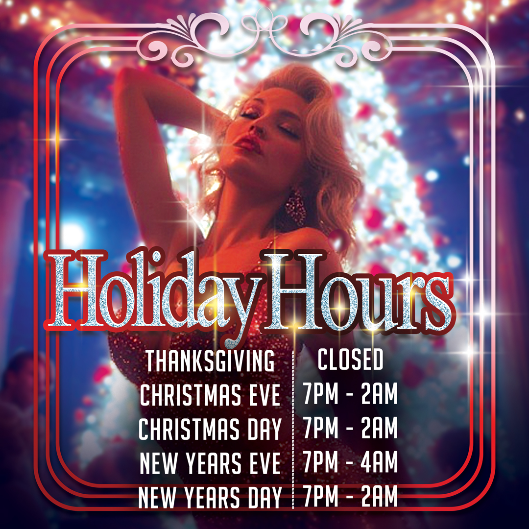 HOLIDAY HOURS THANKSGIVING- CLOSED CHRISTMAS EVE- 7PM – 2AM CHRISTMAS DAY- 7PM – 2AM NEW YEARS EVE- 7PM – 4AM NEW YEARS DAY- 7PM – 2AM WWW.GOLDCLUB. COM
